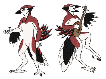 1) Shipwreck is a bipedal bird creature created for the purpose of testing humanoid rigs and animation in Blender and Unity. The original concept of Shipwreck used the base idea of a long-tailed jaeger, a carnivorous seabird, with the humanoid trait of being a swashbuckling pirate. The second iteration (modelsheet/turnaround) removed some of the more animal aspects, like the tail, wings, and birdlike feet, so that the 3D model would be able to fit the automatic rigging tool.