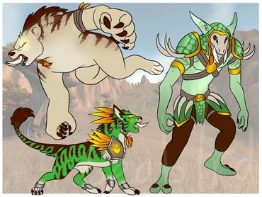 These designs span a handful of years, mostly for personal use and reference. Includes some personal characters, some D&D player-character concepts, a World of Warcraft troll druid, and some unspecified designs (including Scaredy-cat Medium, a design commission). Please click the images to view their captions and credits (where applicable).